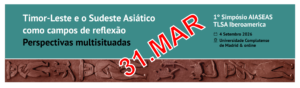 Se ha ampliado el plazo para la presentación de propuestas para el primer simposio internacional de la Asociación Iberoamericana de Estudios del Sudeste Asiático (AIASEAS) y la Timor-Leste Studies Association – Iberoamérica organizan sobre Timor-Leste y el Sudeste Asiático como campos de reflexión: perspectivas multisituadas, con el apoyo de la Facultad de Ciencias Políticas y Sociología de la Universidad Complutense de Madrid.